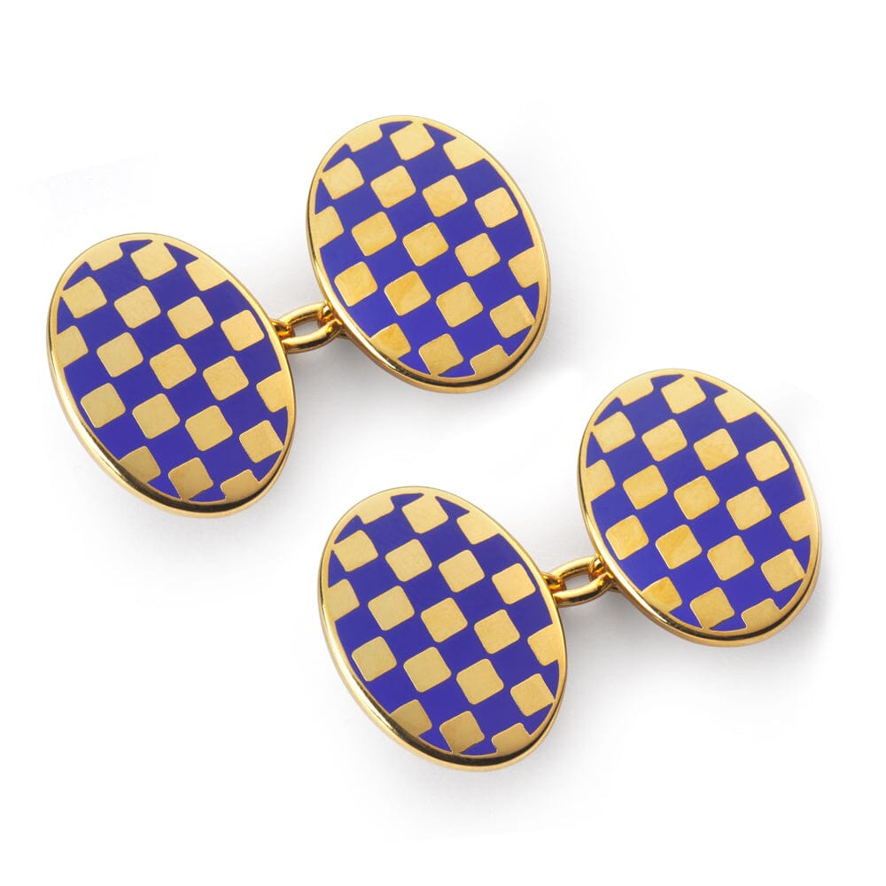 Elevate your style with our exquisite chain cufflinks. Expertly handcrafted in England, these cufflinks feature a classic design enhanced by the vibrant allure of vitreous enamel. The meticulous enameling process involves fusing powdered glass to the base, creating a durable and radiant finish that exudes sophistication.